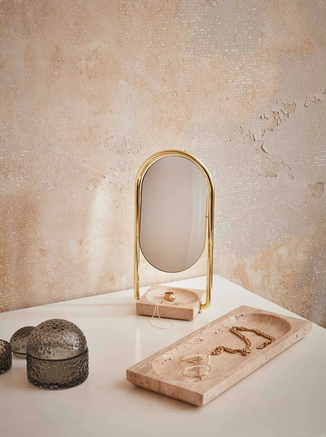 Pöytäpeilissä AYTM-tuotemerkiltä on hieno, toiminnallinen muotoilu ovaalilla peilillä ja kulhon muotoisella pohjalla.