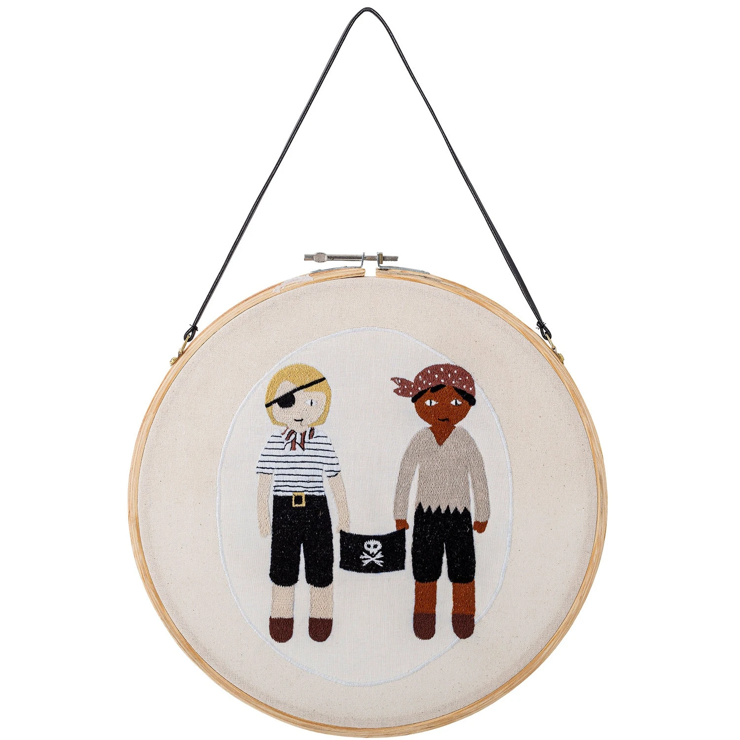 Seinäkoristeessa Bloomingville-tuotemerkiltä on lastenhuoneeseen täydellisesti sopiva söpö muotoilu kirjaillulla motiivilla ja kehyksillä männystä.