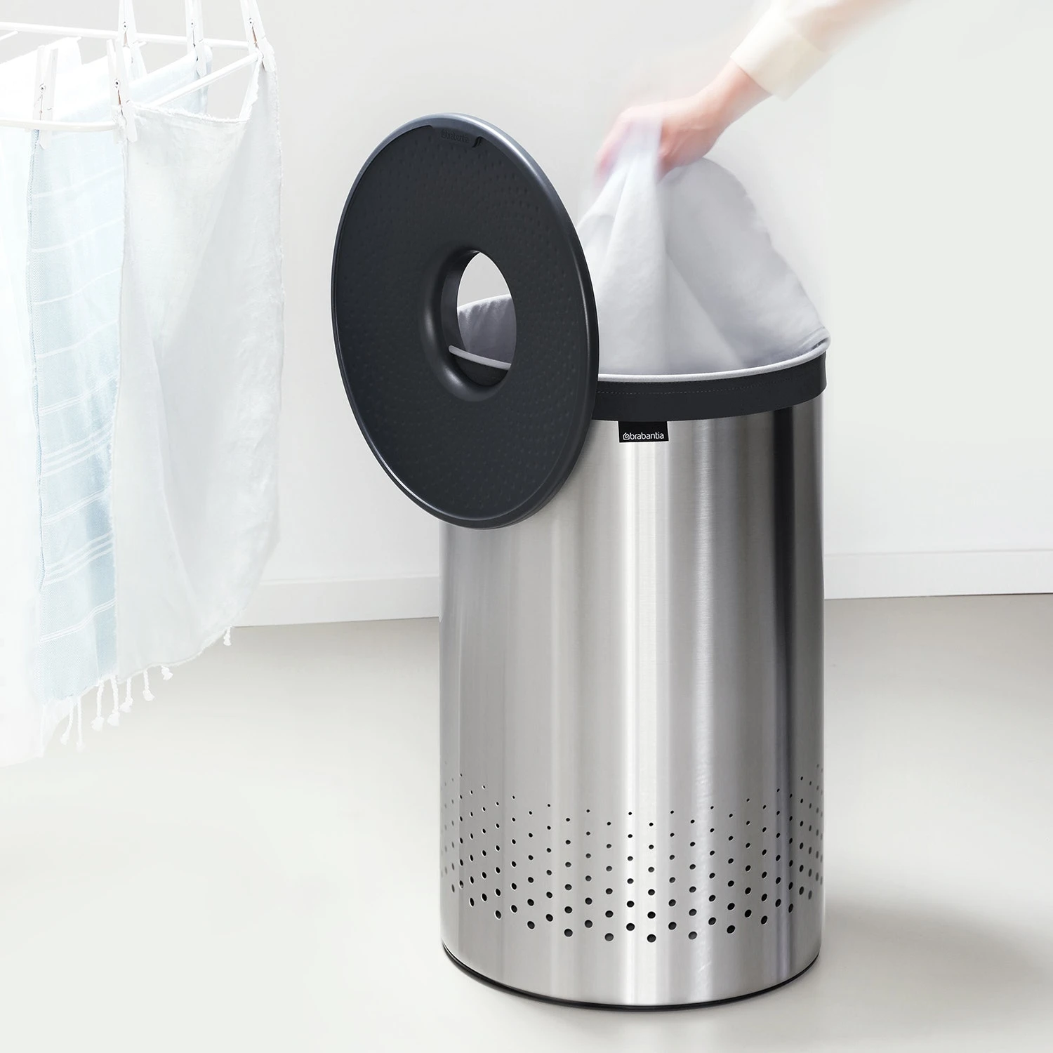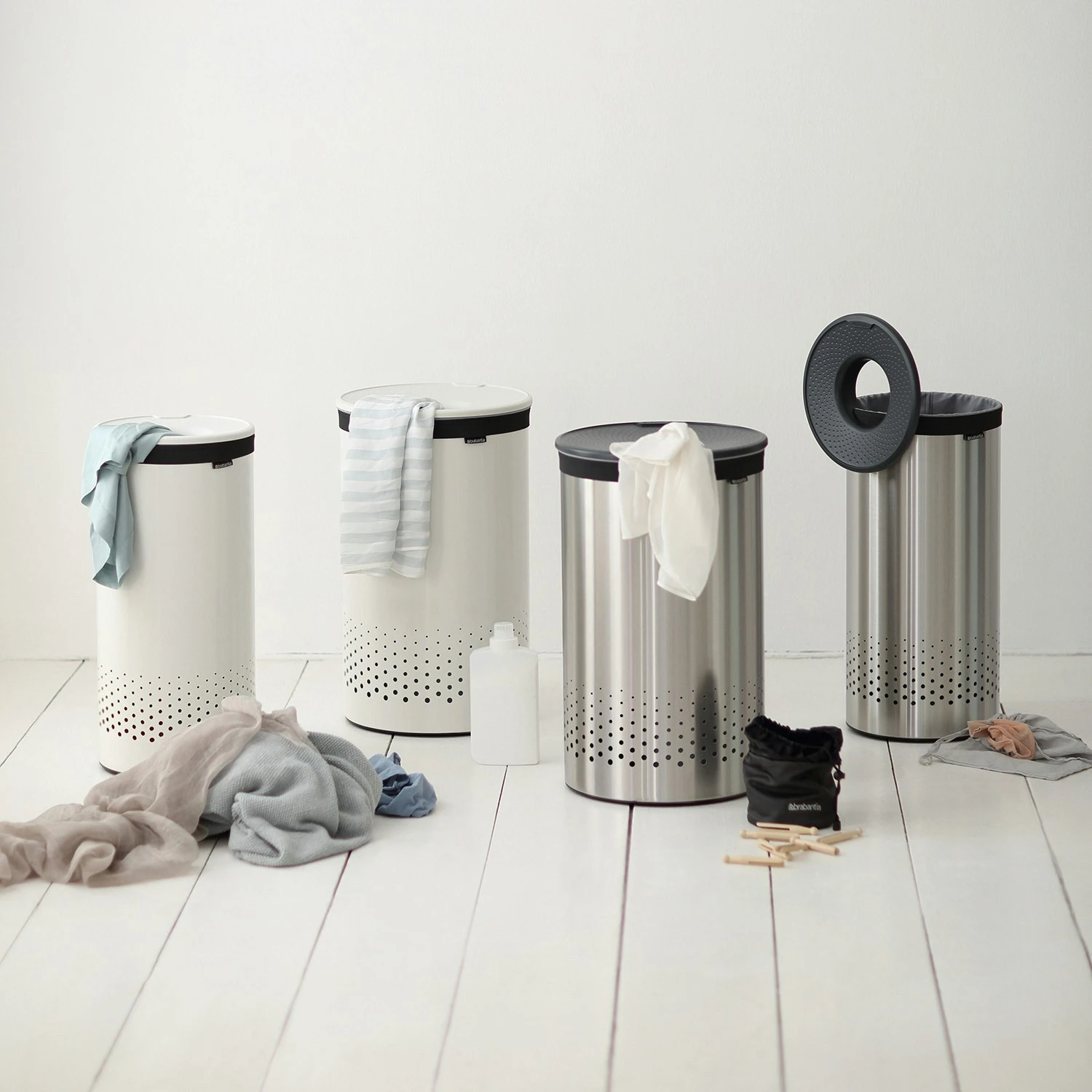 Brabantian pyykkikori on tyylikäs ja käytännöllinen pyykkikori joka on valmistettu ruostumattomasta teräksestä. Korin kannessa on syvennetty aukko josta voit helposti sujauttaa sisään likapyykin. Pyykkikorin muotoilu ja käytännölliset aukot antavat pyykin hengittää. Pyykkikori toimitetaan pyykkipussin kanssa, jonka ansiosta sinun on helppo liikutella pyykkejä siirtämättä pyykkikoria.