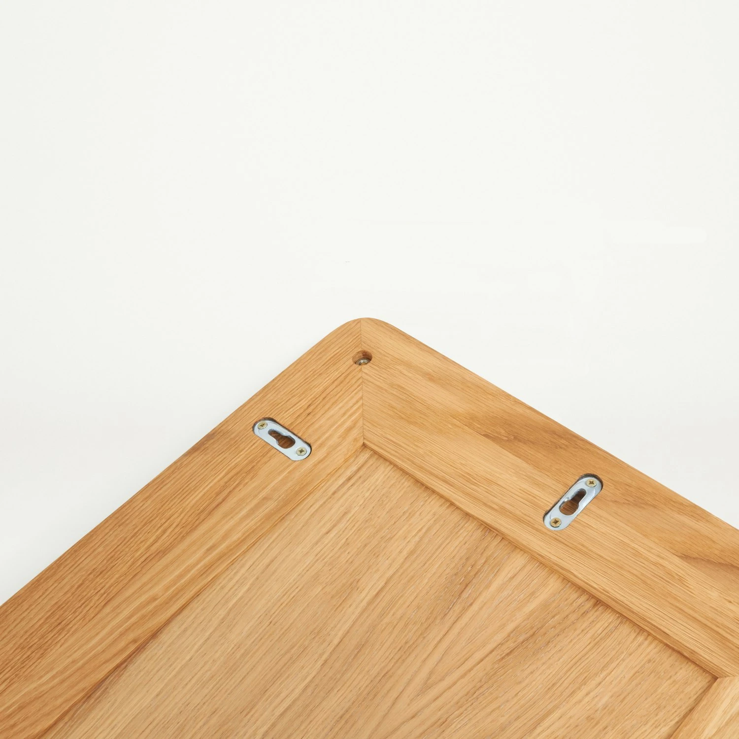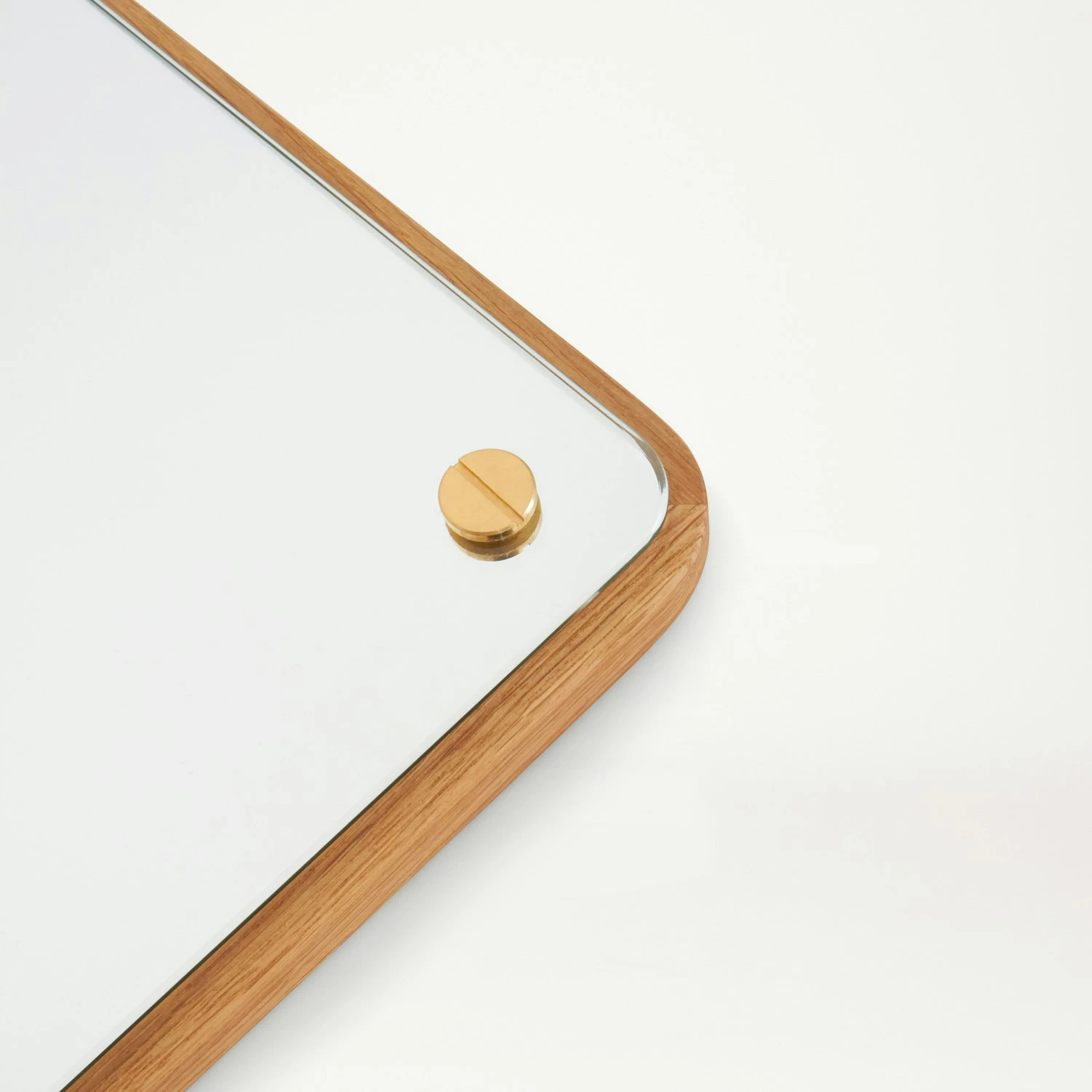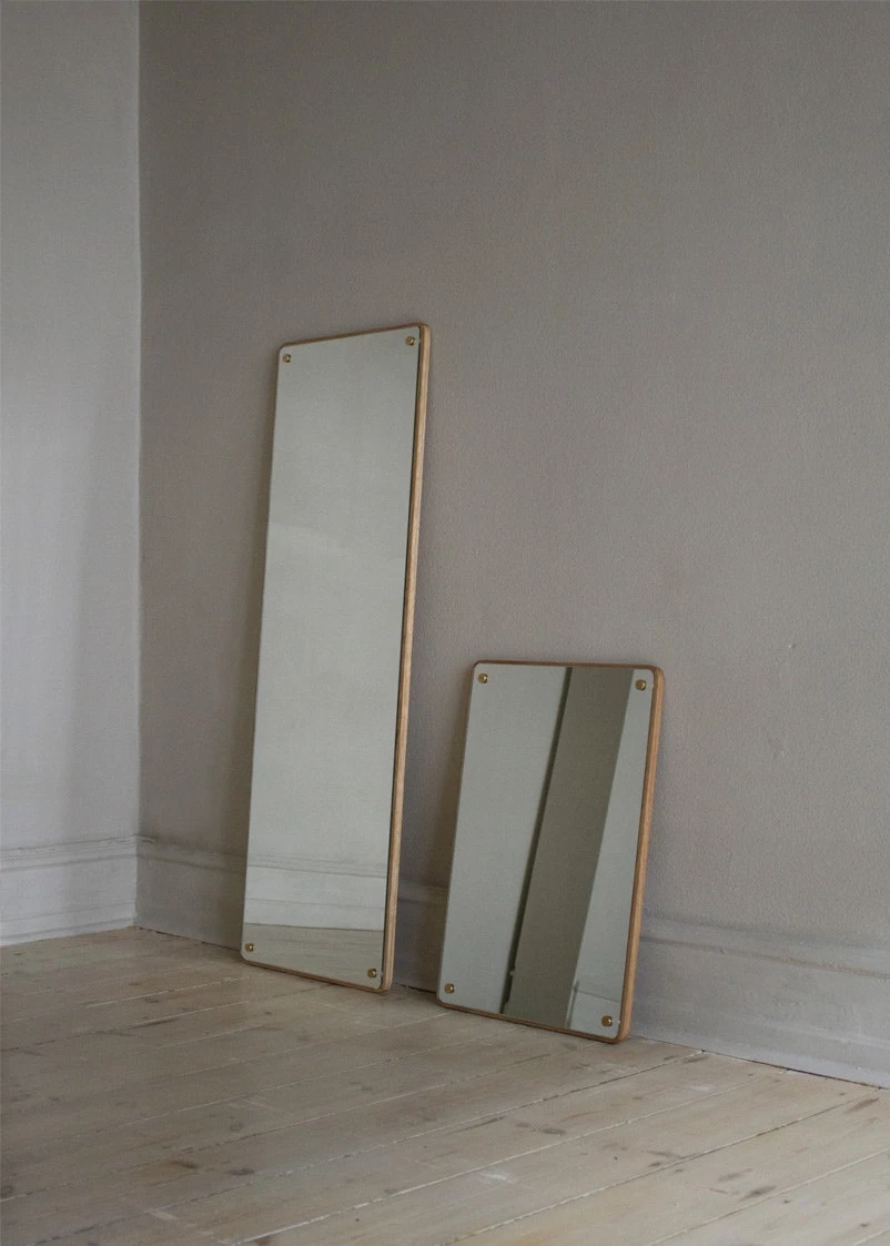Hang it up in the hall where you want to take a last look or in the bedroom to get the feel of a larger room. The mirror has a solid oak back and it can be hung horizontally or vertically. It comes in two sizes for different needs and spaces. The mirror has decorative brass screws on the front as an extra small detail.