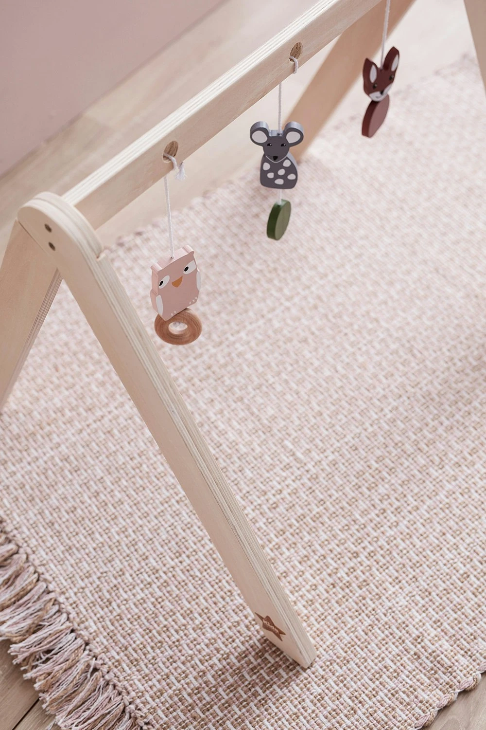 Edvin Baby Gym Wood Figures from the popular brand Kids Concept is a kit which contains three cute wooden figures: a fox, an owl and a mouse. The wooden toys are designed for Kids Concept’s baby gym and come with a cord so they can easily be hung up. Made in solid book with water-based paint.