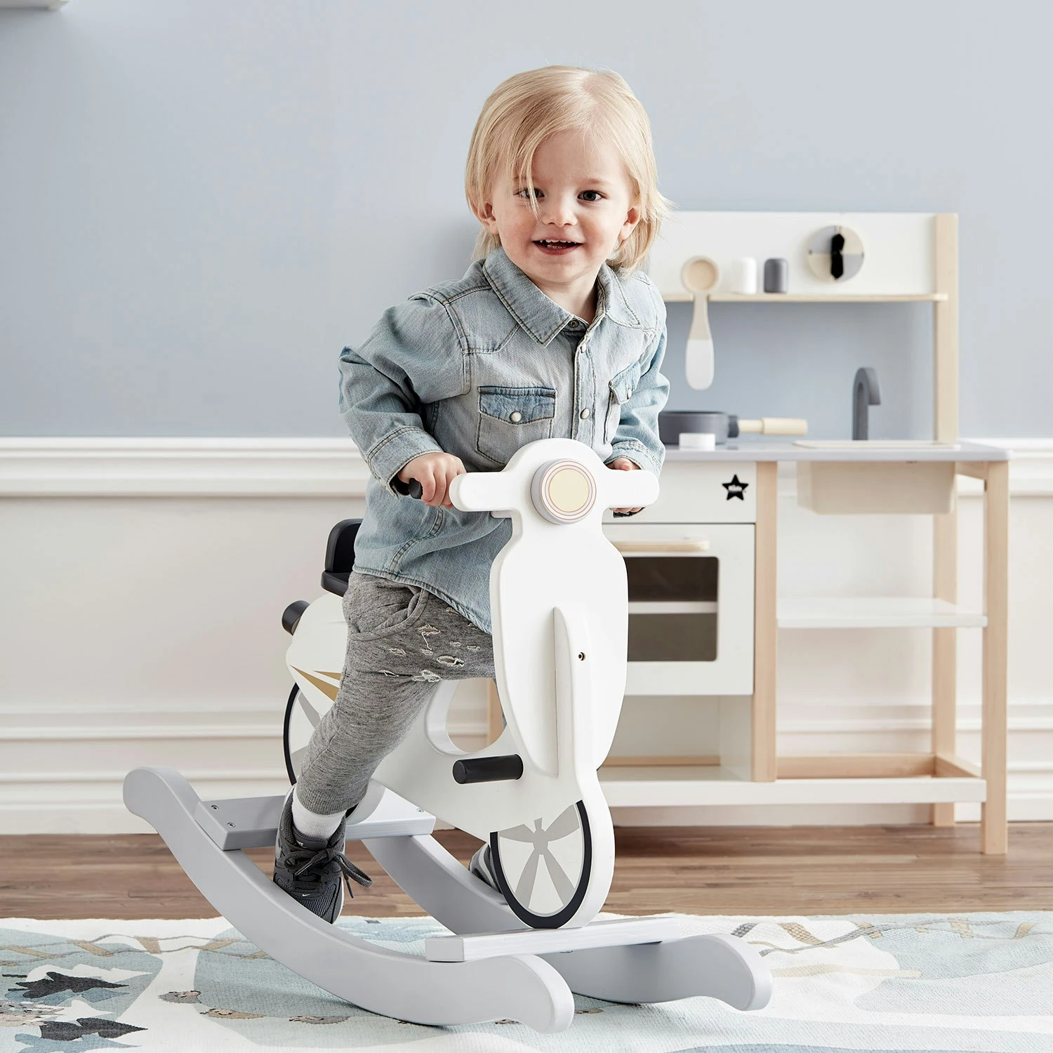 Upea Kids Conseptin valmistama keinuskootteri ihastuttaa klassisilla elementeillään, ja hauskalla muotoilullaan. Keinuskootteri on täydellinen lahja joka vie lapsen mielikuvituksellisiin seikkailuihin. Keinuskootteri on valmistettu mahdollisimman tasapainoiseksi, jotta se on turvallinen lapselle. Skootterissa on myös luistonestävät käsikahvat.